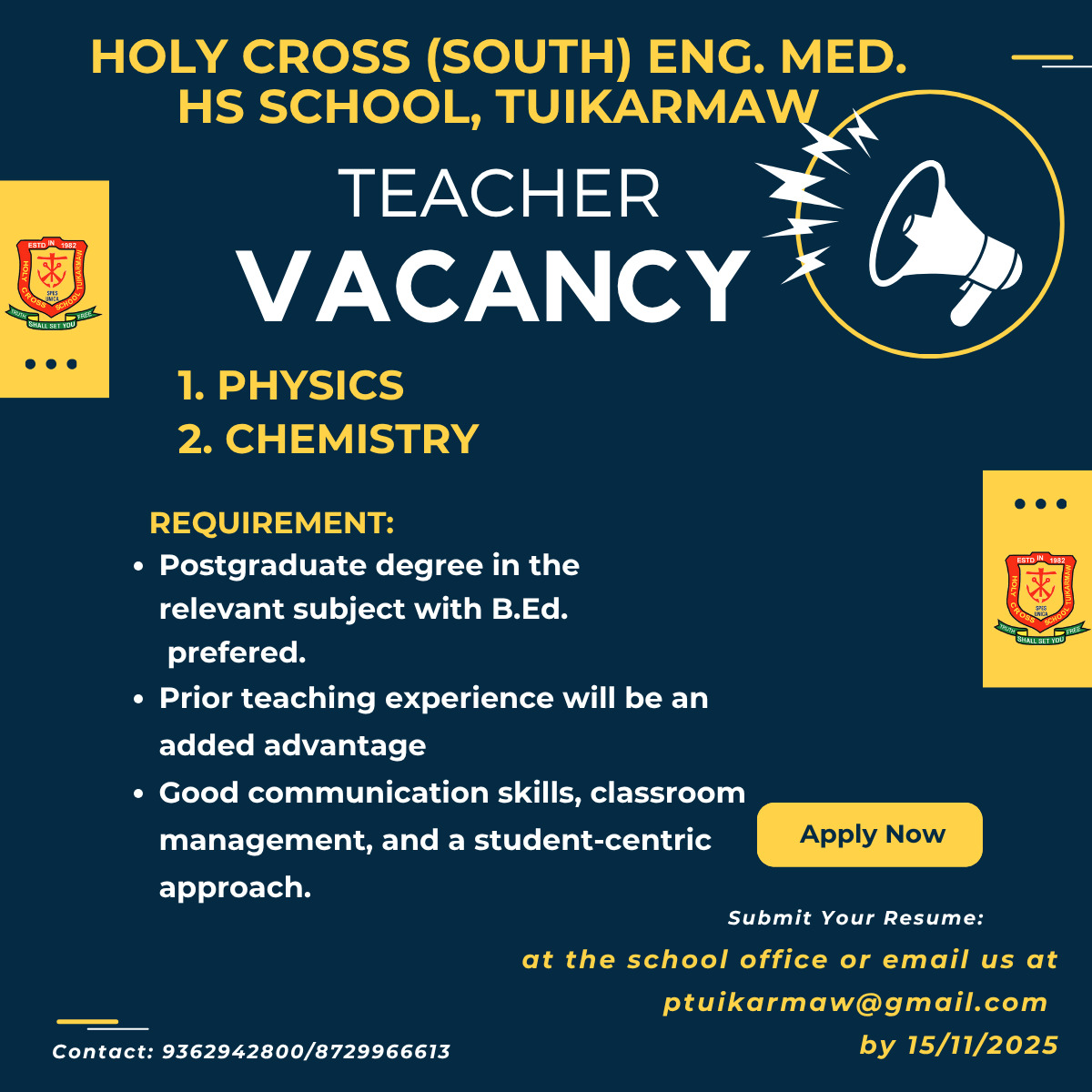 Holy Cross (South) English Medium Higher Secondary School, Tuikarmaw is an Institute established and administered by the Holy Cross Educational Foundation. The institution comes under the Rights and Power granted to religious and linguistic minorities by the Constitution of India (Art. 20 & 30 ).